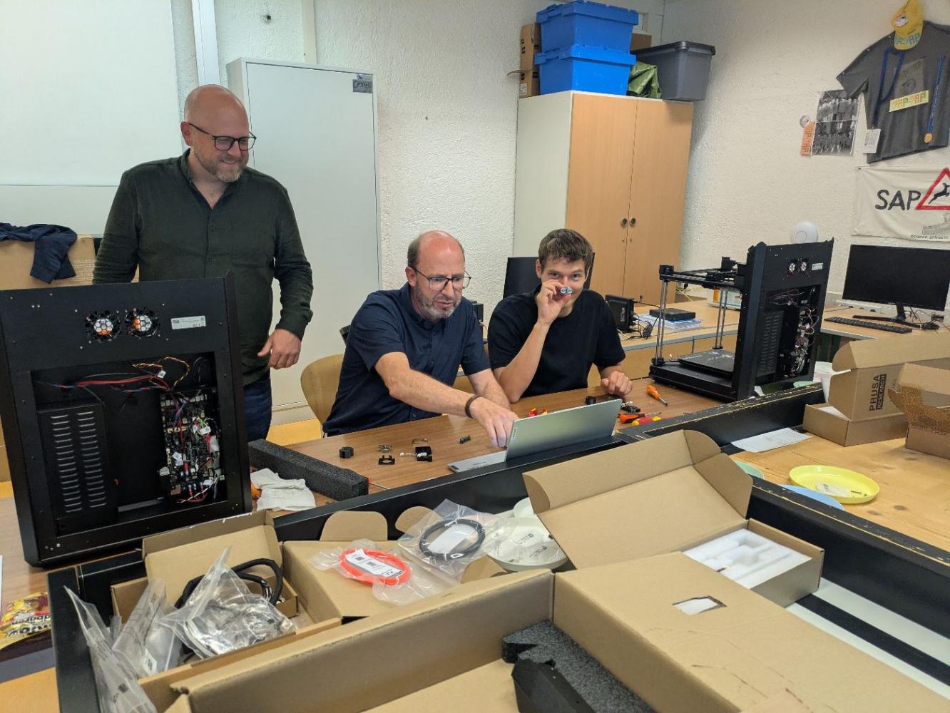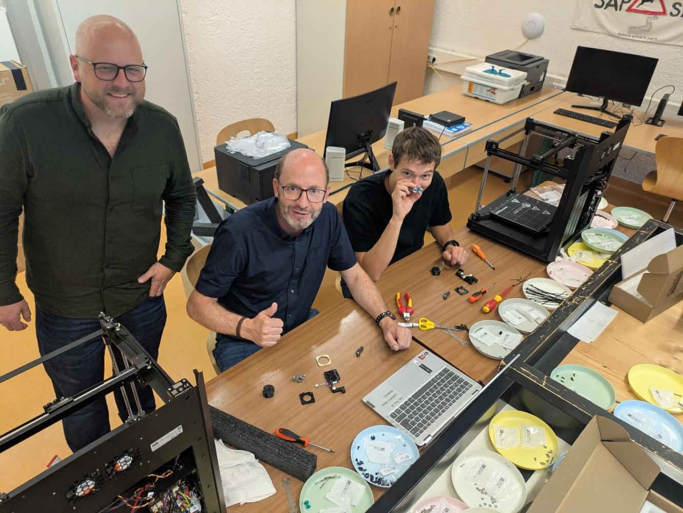 Es gibt aufregende Neuigkeiten aus unseren Technik- und Werkräumen! Ein Team von sieben engagierten Lehrpersonen hat in einem intensiven Workshop über 40 Stunden investiert, um zwei hochmoderne 3D-Drucker vom Typ "PrusaCore One" von Grund auf zusammenzubauen.