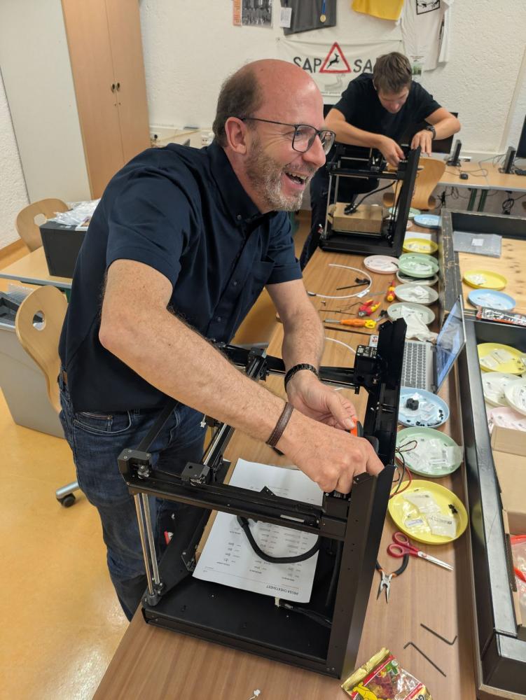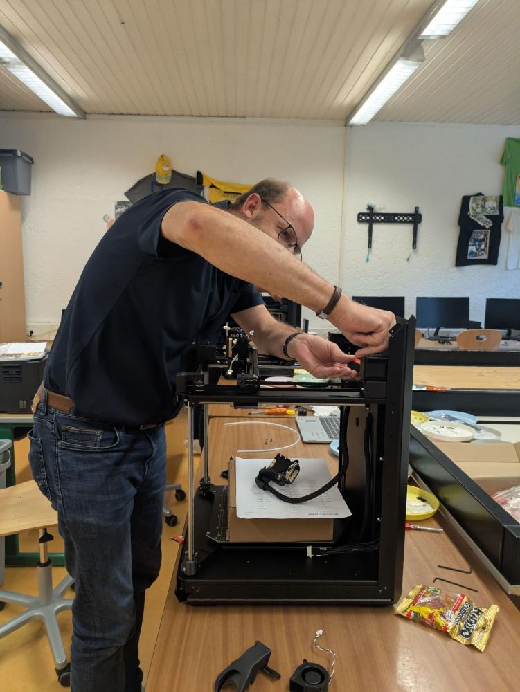 Dieses ambitionierte Projekt fand unter der fachlichen Anleitung von Herrn Bellony statt, einem Experten auf dem Gebiet des 3D-Drucks, der unser Kollegium durch die komplexen Schritte des Aufbaus führte.