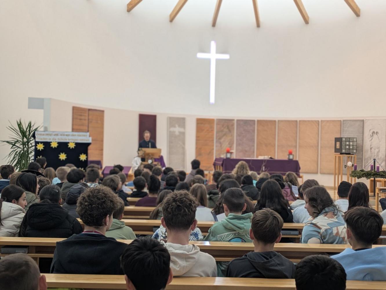 Der Gottesdienst wurde von vielen Klassen aktiv mitgestaltet – durch Lesungen, Fürbitten, musikalische Beiträge und eine eindrucksvolle inhaltliche Erarbeitung der Schülerinnen und Schüler der 1. Klassen. Besonders bewegend war die Auseinandersetzung mit dem „kleinen Frieden“: jenem Frieden, der im Alltag beginnt – im respektvollen Miteinander, im Helfen und Trösten sowie im mutigen Eintreten gegen Ausgrenzung und Mobbing. Die Kinder zeigten eindrucksvoll, wie Frieden in der Schule konkret gelebt werden kann.