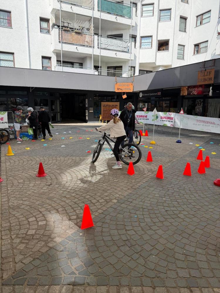 Heute stand für unsere Schüler:innen das sichere Radfahren im Mittelpunkt. Auf einem kleinen, aber abwechslungsreichen Parcours konnten sie wichtige Grundlagen trainieren und ihr Fahrgefühl verbessern – unterstützt von Polizeibeamt:innen, die mit Tipps zur Seite standen und auf die sichere Durchführung achteten.