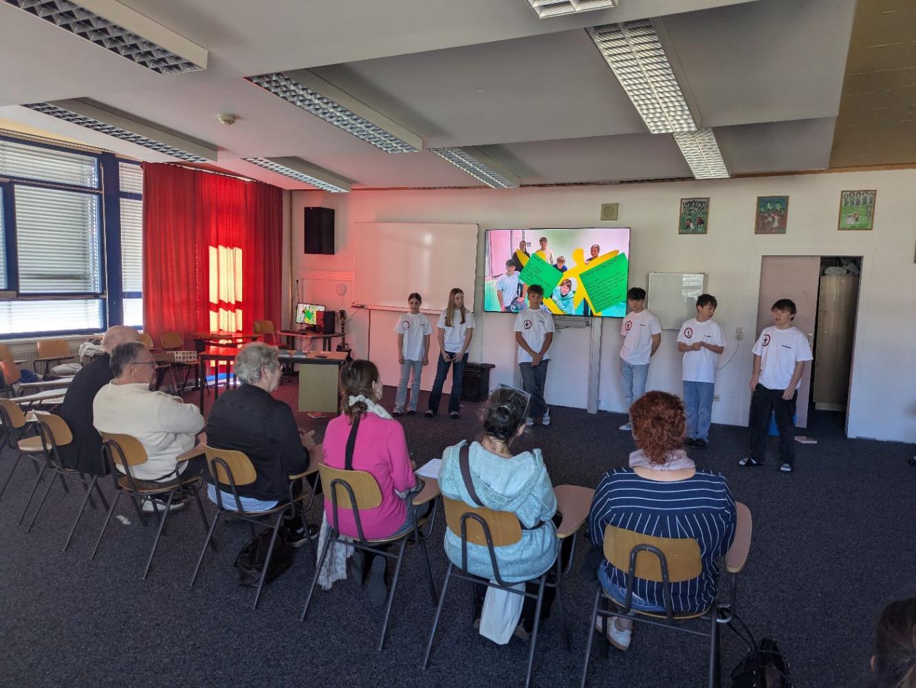 Der Besuch startete mit einem Einblick in unseren lebendigen Campus im „Schulzentrum Weissenbach“. Als zertifizierte iPad-Schule leben wir Digitalisierung jeden Tag. Besonders stolz sind wir auf unsere 1. und 4. Klassen, die Tür an Tür lernen – hier helfen die „Großen“ den „Kleinen“ beim Einstieg in die Tablet-Welt. 🤝📱
