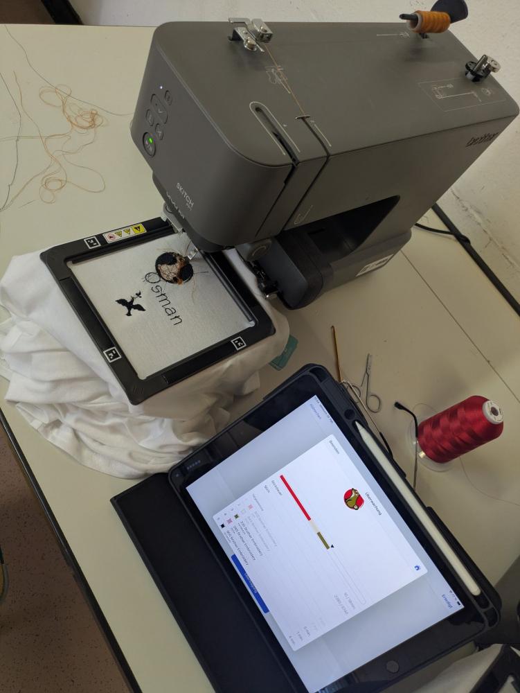 Kreative Textilwerkstatt: Stickmaschine (Brother PP1) im Dauereinsatz 👕🧵. Mit dem Schneidplotter und der Transferpresse entstehen bei uns die coolen Team-T-Shirts für Wettbewerbe.