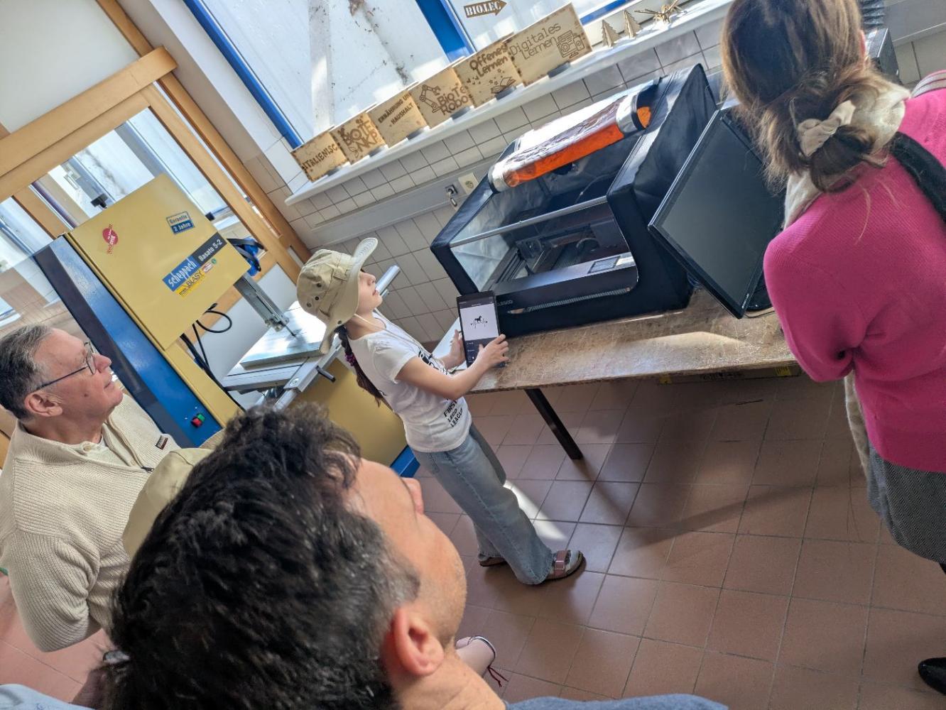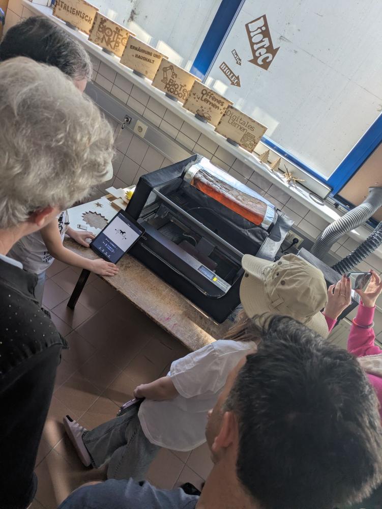 Präzision am Lasercutter: Unsere Schülerinnen zeigten, wie individuelle iPad-Hüllen mit dem Engraver gestaltet werden. ⚡