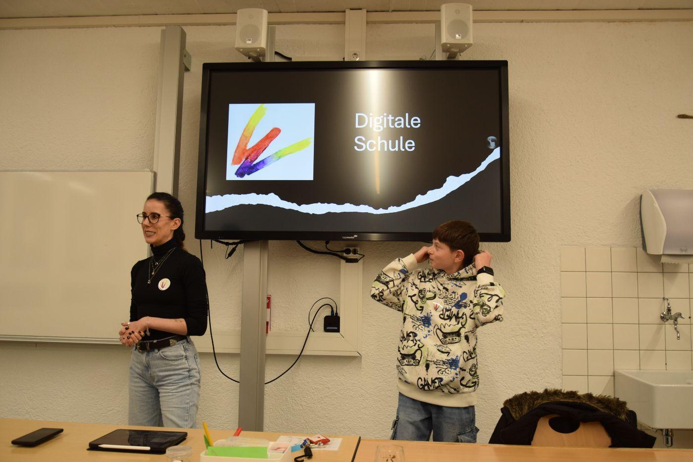 Besonders dichtes Gedränge herrschte im Bereich der Digitalen Schule. Hier zeigten unsere Schülerinnen und Schüler stolz, wie iPads heute ganz selbstverständlich als Werkzeuge im Unterricht integriert sind.