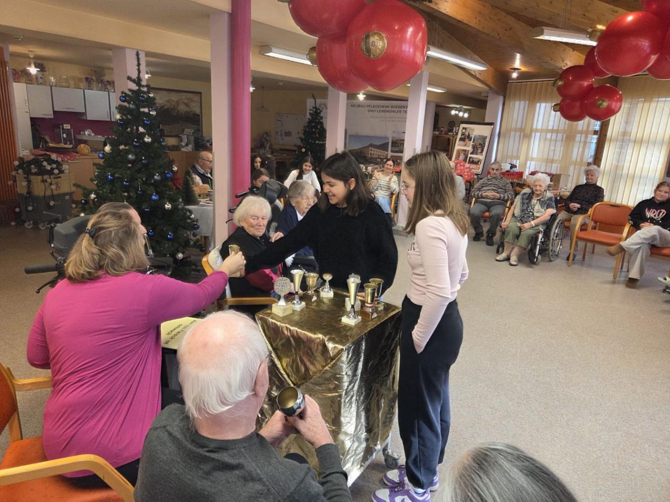 Ein kleines Highlight war die abschließende Siegerehrung für die besten Spielerinnen und Spieler, bei der es am Ende – wie es sich zu Weihnachten gehört – natürlich nur Gewinner gab 😉. Es war eine wunderbare Begegnung zwischen den Generationen, die allen Beteiligten ein Lächeln ins Gesicht zauberte. 🎄🍪